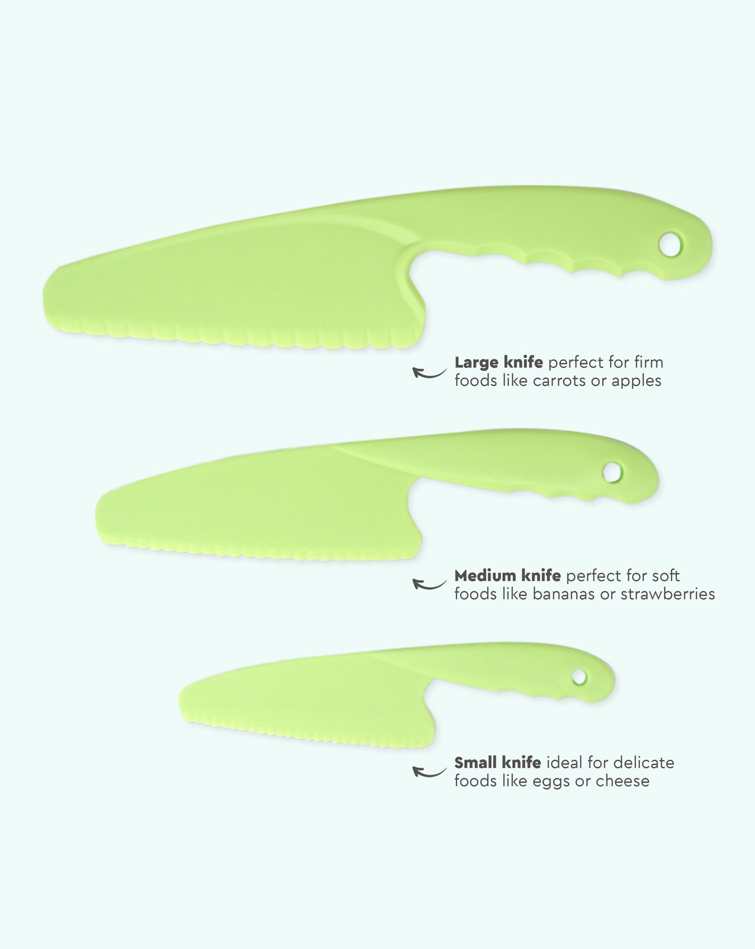 This set includes three child-safe knives, each designed for a different task and a different skill. A big knife for tougher jobs like slicing bread or chopping veg. A medium knife for fruits and softer foods. A small knife for precision tasks like cutting cheese and eggs. Each one helps your child build confidence, coordination, and real kitchen knowhow, one slice at a time.